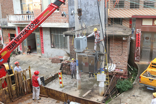 圖為8月18日下午雷雨停后,在寧遠(yuǎn)縣天堂鎮(zhèn)天堂社區(qū)曾家洞位置的10KM桐前線寄干支線故障搶修現(xiàn)場(chǎng),電力黨員先鋒突擊隊(duì)員在更換被雷擊壞的變電器等設(shè)備。