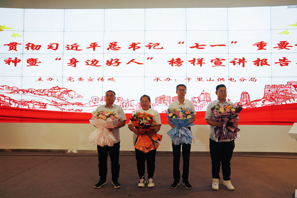 報(bào)告會(huì)上,四位宣講人用質(zhì)樸的語(yǔ)言、鮮活的事例,講述了一個(gè)個(gè)溫暖感人的真實(shí)故事——在平凡崗位上用堅(jiān)韌與執(zhí)著為電網(wǎng)安全撐起了一片晴朗的天空,對(duì)電力事業(yè)有著無(wú)限忠誠(chéng)的越志軍;用一顆真誠(chéng)心充當(dāng)“武器”,用淋漓的汗水支撐起使命,用堅(jiān)定的意志承擔(dān)起疫情防控工作的電力人吳飛云鵬;工作中兢兢業(yè)業(yè)、勤勤懇懇,生活中助人為樂(lè)、傳承美德,用實(shí)際行動(dòng)踐行著電力人的擔(dān)當(dāng)與奉獻(xiàn)的楊俊芝;九年征程一心堅(jiān)持,發(fā)揮基層黨組織的戰(zhàn)斗堡壘作用,為社區(qū)居民解決難事,為受難群眾提供幫助的康煒。他們的故事感人至深、催人奮進(jìn),生動(dòng)呈現(xiàn)了“身邊好人”的愛(ài)舉、壯舉、善舉、孝舉、義舉引起了現(xiàn)場(chǎng)強(qiáng)烈共鳴,感染著現(xiàn)場(chǎng)所有人。宣講結(jié)束后,志愿者們?yōu)榈綀?chǎng)的“身邊好人”獻(xiàn)花,大家紛紛表示要學(xué)習(xí)“身邊好人”,傳遞榜樣力量,奮斗新時(shí)代。