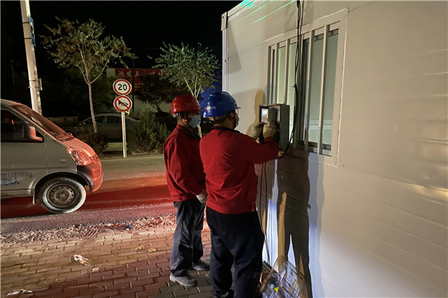 急難險重,黨員先行。疫情監(jiān)測點(diǎn)大多設(shè)在村子的交通路口,接電難度較大,為了盡早給臨時防疫小屋送去明亮與溫暖,黨員先鋒隊員們克服地區(qū)跨度遠(yuǎn),環(huán)境復(fù)雜、夜間照明不足、夜晚寒冷等種種困難,以高度的政治責(zé)任感和使命感,連續(xù)奮戰(zhàn)5個多小時,提前完成了巴音陶亥鎮(zhèn)全部疫情防控檢測站點(diǎn)接電任務(wù)。