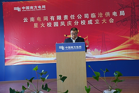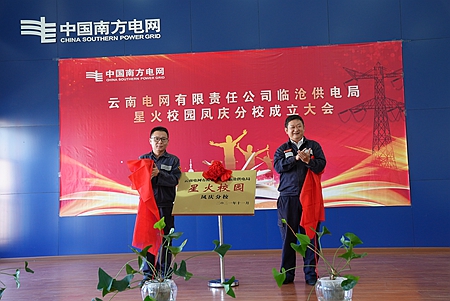 “我是臨滄鳳慶供電局員工,光榮的南網(wǎng)人,忠誠于南方電網(wǎng)事業(yè)······”隨著錚錚誓言,臨滄鳳慶供電局星火校園鳳慶分校揭牌儀式在鳳慶供電局本部404會議室隆重舉行。前期,鳳慶供電局對校領導議事機構(gòu)、政教處、教務處、教研組、總務處及一系列人員進行職責劃分并下發(fā),宣貫臨滄供電局臨星校園鳳慶分校創(chuàng)建方案,明確辦校校名及校訓,確立辦校理念及目標,明晰細化涵蓋班級培訓實施內(nèi)容等。經(jīng)過緊鑼密鼓的籌備,臨星校園鳳慶分校在全場領導和與會同志們的共同見證下進行“星火校園鳳慶分校”揭牌,這標志著臨滄鳳慶供電局星火校園鳳慶分校正式成立。