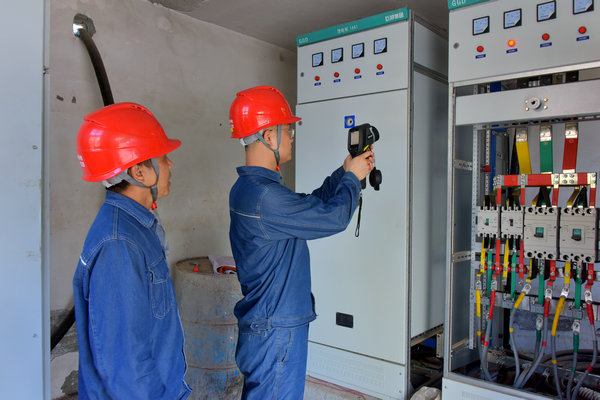 中國(guó)電力網(wǎng)訊 6月7日,高考的第一天。在樂(lè)安縣高考考點(diǎn)縣城第二中學(xué),國(guó)網(wǎng)樂(lè)安縣供電公司員工周平、鄧文濤正對(duì)設(shè)備進(jìn)行巡視測(cè)溫,確保高考現(xiàn)場(chǎng)可靠供電。