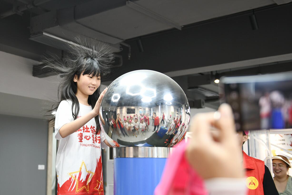 “摸一個球居然能讓頭發(fā)立起來,太神奇了。”同學(xué)們懷著既忐忑又好奇的心情,紛紛進行了靜電球體驗,連連稱奇。一個個互動游戲,讓同學(xué)們爭相體驗,樂此不疲,他們摩擦起電讓頭發(fā)起飛的樂趣,感受用自己的力量產(chǎn)生電的魅力,也讓他們對電有了一個更深入的認(rèn)識。隨后,志愿者還通過提前設(shè)置的簡單電力知識互動問答,在講解并分析中,讓小朋友們進一步了解用電安全,從而養(yǎng)成節(jié)約用電的好習(xí)慣。