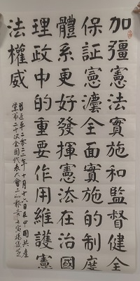本次活動(dòng)采取“線上+線下”形式全面開展,以豐富多彩的活動(dòng),深入學(xué)習(xí)宣傳貫徹習(xí)近平法治思想和習(xí)近平總書記關(guān)于憲法的重要論述。本次活動(dòng)中,組織全處職工積極參加“學(xué)習(xí)宣傳貫徹黨的二十大精神,推動(dòng)全面貫徹實(shí)施憲法”線上答題活動(dòng),共58人參加為期一周的線上答題;組織全體職工觀看烏海市及烏海供電公司普法宣傳視頻2個(gè),營(yíng)造出尊法學(xué)法守法用法的良好法治氛圍;通過(guò)樓宇內(nèi)張貼宣傳海報(bào)的方式使職工群眾隨時(shí)了解憲法知識(shí),實(shí)現(xiàn)常態(tài)化普法宣傳,本次張貼憲法宣傳海報(bào)共6張;該處職工楊俊芝撰寫普法題材的書法作品1幅,青年職工制作電腦繪畫作品1幅以及隨手拍等,通過(guò)不同的方式宣傳學(xué)習(xí)憲法、民法典、電力法、公司法、中央企業(yè)合規(guī)管理辦法等,鼓勵(lì)大家要樹立牢固的法治觀念,成為憲法的自覺(jué)遵守者。