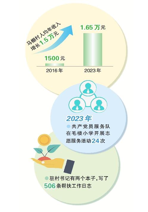 2023年,馬棚村人均年收入達到1.65萬元,比2016年增加1.5萬元。
