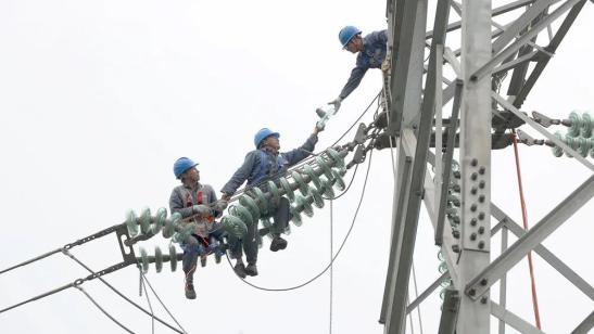 高空之上,輸電運(yùn)維人員用行動(dòng)和責(zé)任守護(hù)電網(wǎng)安全。