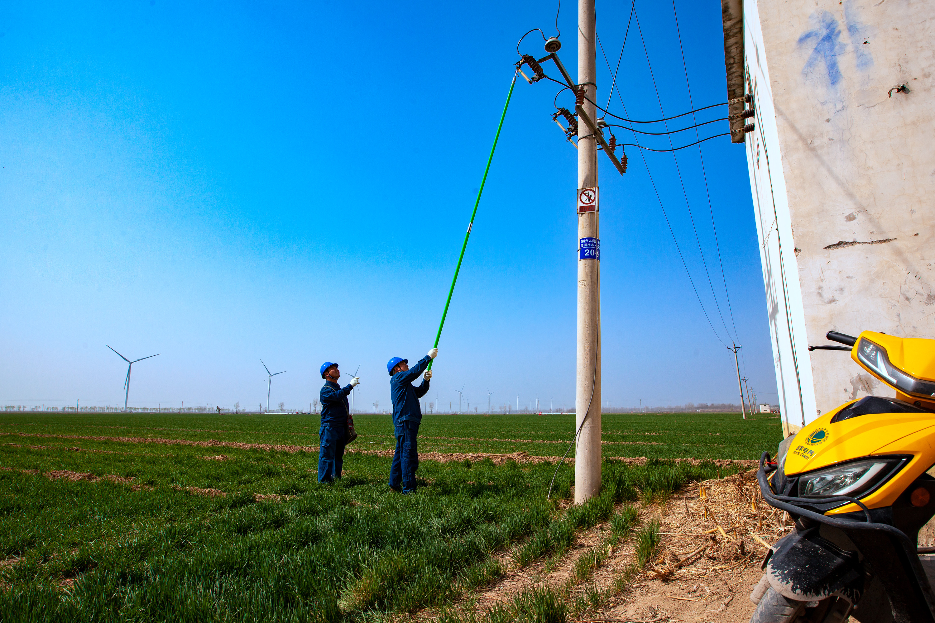 3月9日,在河南滑縣四間房鎮(zhèn)麥田里,國網(wǎng)滑縣供電公司工作人員呂衛(wèi)兵、韓記偉在檢查農(nóng)田機(jī)井和噴灌裝置用電設(shè)備時(shí),發(fā)現(xiàn)一處安全隱患,馬上糾正并對(duì)客戶進(jìn)行用電安全知識(shí)告知。