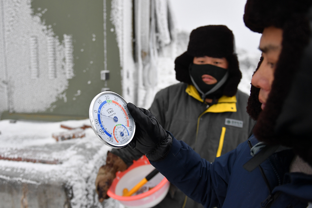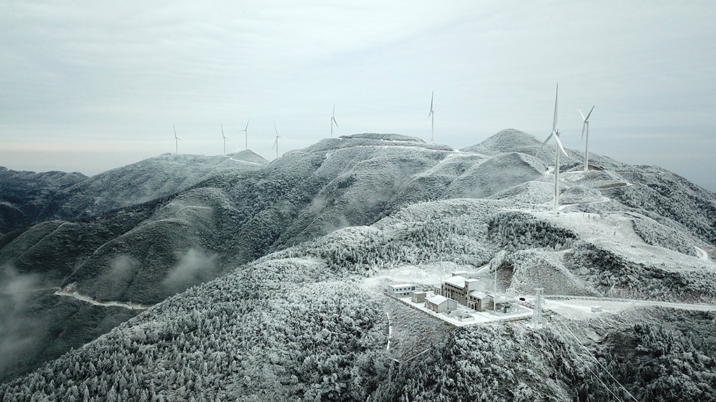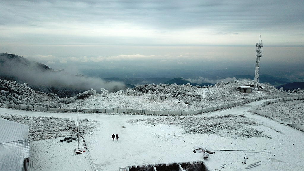 12月19日,尹斌(右)和龍昱君前往110千伏西公線003號(hào)監(jiān)測(cè)哨所觀測(cè)冰情。新華社記者 陳振海 攝海拔1420米的西晃山,位于湖南省懷化市芷江侗族自治縣和麻陽苗族自治縣交界處。110千伏西公線是西晃山風(fēng)電場(chǎng)升壓站至220千伏公坪變電站的送電線路工程,為懷化地區(qū)提供電能,每年都是湖南省內(nèi)最早結(jié)冰的輸電線路之一。