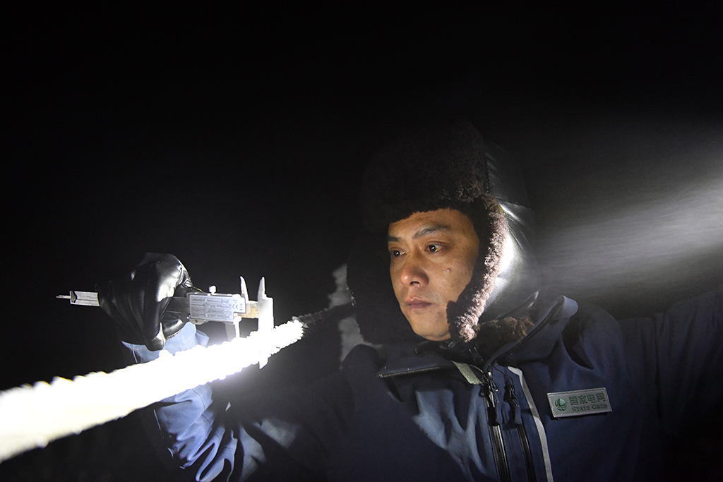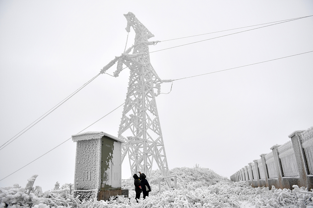 本輪寒潮期間,湖南省提前布置51套主網(wǎng)、142套配網(wǎng)融冰裝置,8300多名電力工人隨時(shí)待命,做好雨雪、冰凍、強(qiáng)風(fēng)等異常天氣下的設(shè)備特巡和特護(hù),守護(hù)電網(wǎng)安全,守護(hù)萬家燈火。(新華社記者 陳振海 攝)