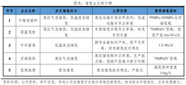 3、儲(chǔ)氫企業(yè)排行榜