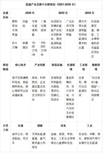 2022年3月23日的《氫能產(chǎn)業(yè)發(fā)展中長(zhǎng)期規(guī)劃(2021-2035年)》,明確氫能的三大定位:未來(lái)國(guó)家能源體系的重要組成部分,用能終端實(shí)現(xiàn)綠色低碳轉(zhuǎn)型的重要載體”,戰(zhàn)略性新興產(chǎn)業(yè)和未來(lái)產(chǎn)業(yè)重點(diǎn)發(fā)展方向。除了《氫能產(chǎn)業(yè)中長(zhǎng)期規(guī)劃(2021-2035年)》,幾乎是同一時(shí)間出臺(tái)的《十四五能源體系規(guī)劃》也指出了氫能行業(yè)規(guī)模化發(fā)展對(duì)全球能源體系的深刻變革的影響,其表述為:新型儲(chǔ)能和氫能有望規(guī)模化發(fā)展并帶動(dòng)能源系統(tǒng)形態(tài)根本性變革,構(gòu)建新能源占比逐漸提高的新型電力系統(tǒng)蓄勢(shì)待發(fā),能源轉(zhuǎn)型技術(shù)路線和發(fā)展模式趨于多元化。