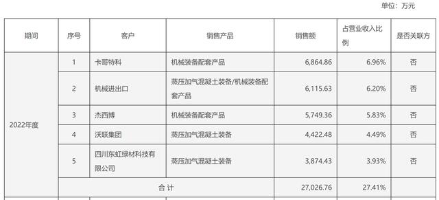 天元智能2022年公司前五大客戶銷售情況:單位萬元