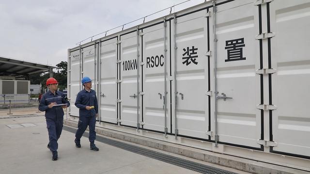 據(jù)悉,該裝置依托“電-氫”和“氫-電”的高效、雙向轉(zhuǎn)化優(yōu)勢(shì),豐富了新型電力系統(tǒng)的調(diào)節(jié)資源,助力更多的新能源并網(wǎng)消納,也提升了電網(wǎng)在各種極端情況下的韌性與可靠性。一方面,該裝置可以作為儲(chǔ)能設(shè)備,在用電低谷時(shí)將富余的綠色電能用來(lái)制氫,并儲(chǔ)存起來(lái),有助于粵港澳大灣區(qū)風(fēng)電等新能源的大規(guī)模就近消納,促進(jìn)能源間的“時(shí)空轉(zhuǎn)移”,也為交通、工業(yè)等行業(yè)提供“綠氫”,助力各行業(yè)深度脫碳;另一方面,該裝置可以作為發(fā)電設(shè)備,在用電高峰時(shí),以及各類應(yīng)急情況下,將儲(chǔ)存的綠色氫氣用來(lái)發(fā)電,實(shí)現(xiàn)電力供應(yīng)更加安全可靠、綠色低碳。