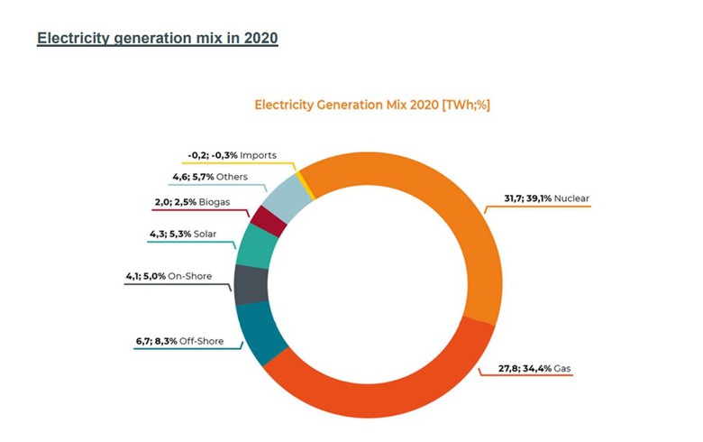 除了擴大可再生能源發(fā)電能力外,2020年電力標志是核能發(fā)電量下降,滿足了比利時39.1%的電力需求,燃氣發(fā)電廠電量趨于穩(wěn)定,以及電力進出口之間接近平衡。
