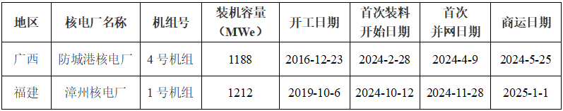 1)漳州核電廠1號機組2024年10月12日裝料,本表格中發(fā)電量及上網電量數據為調試期間電量,能力因子暫無數據。