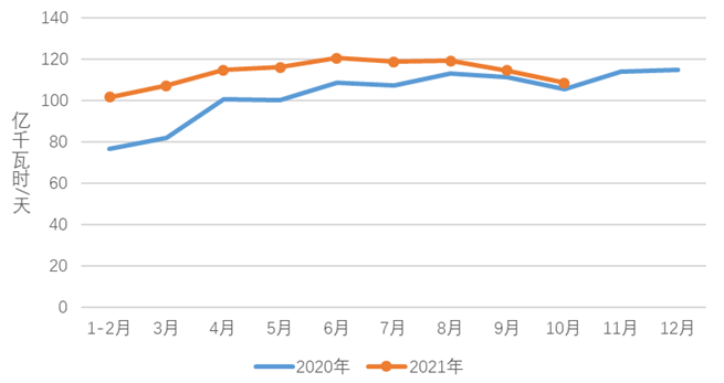 2021年1-10月電力消費(fèi)情況