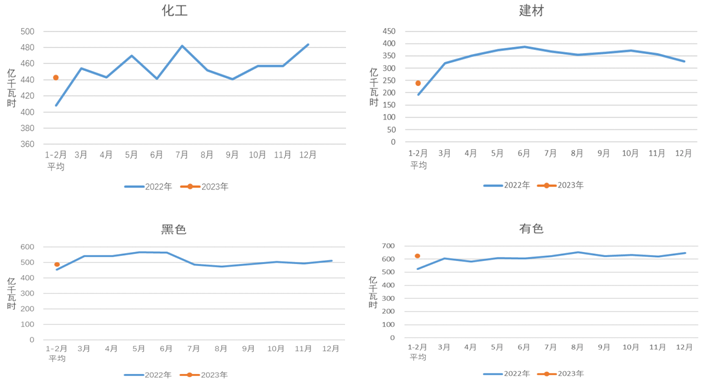 圖 2022、2023年重點行業(yè)分月用電量情況