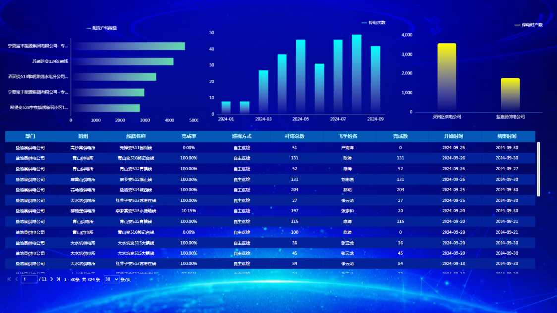 隨著寧東公司配網(wǎng)專(zhuān)業(yè)PC端及移動(dòng)端看板上線(xiàn),業(yè)務(wù)人員以往通過(guò)系統(tǒng)取數(shù)后手動(dòng)計(jì)算的數(shù)據(jù),如“配變戶(hù)均容量”、“停電時(shí)戶(hù)數(shù)”等,均可從場(chǎng)景直接獲取;需跨系統(tǒng)查看的內(nèi)容,如“配變與線(xiàn)路停電信息及涉及用戶(hù)明細(xì)”、“無(wú)人機(jī)飛手任務(wù)完成情況”等,都已在場(chǎng)景直觀展示出來(lái),大大提升工作效率。