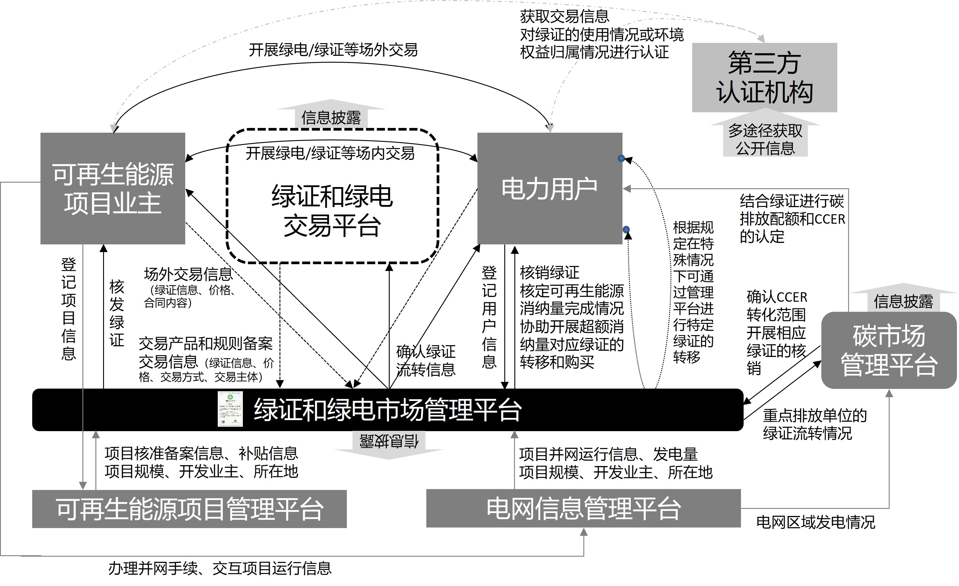 此外,綠電交易和綠證交易過程中也存在信息不對稱、不透明的問題,場內(nèi)和場外交易信息披露仍有很大進步空間,這些信息包括可再生能源項目信息、綠證掛牌數(shù)量和價格、周期性的交易規(guī)模、場內(nèi)場外各類交易的平均成交價等。