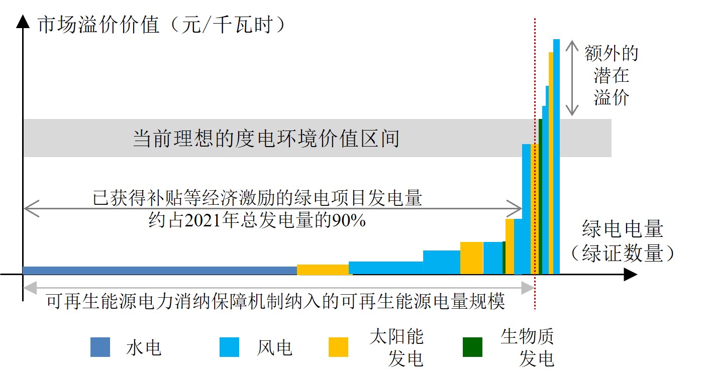 整體來看,盡管當前綠電市場化交易規(guī)模正在快速擴大,政府部門和社會各界期望也較高,但與中國可再生能源發(fā)電規(guī)模相比,其市場規(guī)??傮w仍然較小、價格相對偏低。