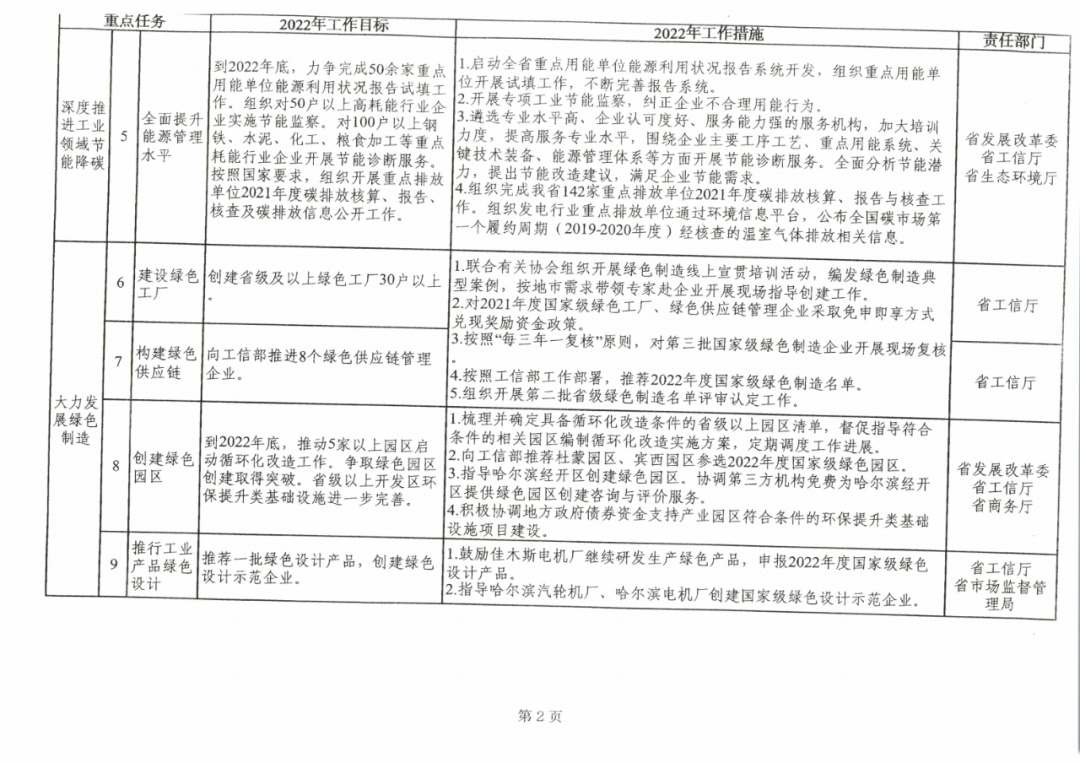 附件:《黑龍江省工業(yè)領(lǐng)域碳達峰實施方案》2022年工作計劃臺賬