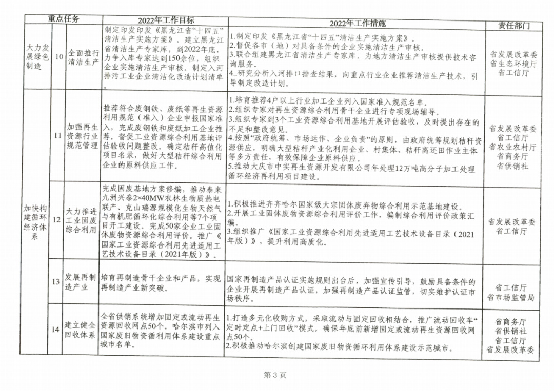 資源綜合利用基地建設(shè)優(yōu)化。加快資源循環(huán)發(fā)展,推進齊齊哈爾、大慶、雞西、七臺河等國家級資源綜合利用基地建設(shè),支持基地內(nèi)的企業(yè)開展工業(yè)資源綜合利用共性關(guān)鍵技術(shù)裝備研發(fā)應(yīng)用,著力提升基地技術(shù)水平和產(chǎn)業(yè)服務(wù)能力。支持工業(yè)園區(qū)和重點企業(yè)開展資源循環(huán)利用改造和示范,形成典型行業(yè)可復(fù)制推廣技術(shù)路線和模式。
