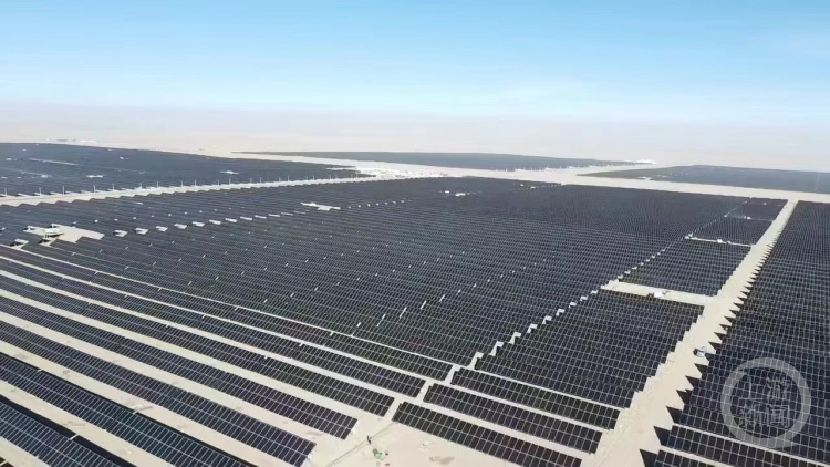 天合光能格爾木烏圖美仁鄉(xiāng)100MW光伏項目。 圖片來源/天合光能