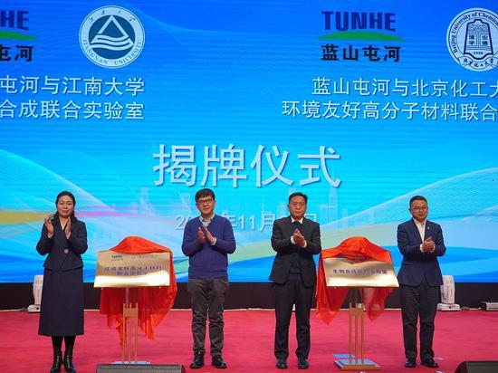“ ‘鏈’上昌吉•融入絲路”2024年綠色能源化工新材料產(chǎn)業(yè)創(chuàng)新鏈發(fā)展大會(huì)28日在新疆昌市舉辦。會(huì)上,藍(lán)山屯河中央研究院、藍(lán)山屯河與江南大學(xué)“生物合成聯(lián)合實(shí)驗(yàn)室”、藍(lán)山屯河與北京化工大學(xué)“環(huán)境友好高分子材料聯(lián)合實(shí)驗(yàn)室”等揭牌成立。
