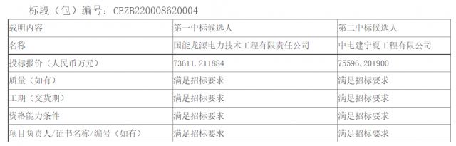 11月3日,龍?jiān)措娏幭凝堅(jiān)垂尽皩幭嬷绷鳌迸涮仔履茉椿刂行l(wèi)300萬千瓦光伏復(fù)合項(xiàng)目(一期100萬千瓦)光伏區(qū)EPC總承包公開招標(biāo)中標(biāo)候選人公示,中標(biāo)結(jié)果如下表所示。