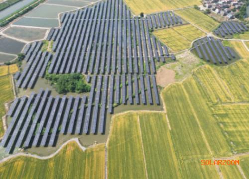 “領(lǐng)跑丹陽”光伏電站位于江蘇省丹陽市延陵鎮(zhèn),項(xiàng)目利用大呂村、趙巷村等5個(gè)行政村累計(jì)3200畝魚塘水域資源,采用漁光互補(bǔ)的方式建成。項(xiàng)目總投資約7.5億元,是蘇南五市目前為止并網(wǎng)規(guī)模最大的光伏電站。