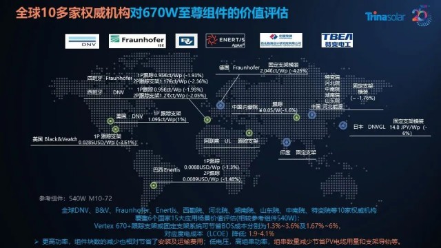 除此之外,DNV、拉美Enertis、北美Black&Veatch、西勘院等十余家國內(nèi)外權(quán)威機(jī)構(gòu)在全球范圍內(nèi)對(duì)600W+高功率組件進(jìn)行了廣泛的價(jià)值分析,覆蓋了15大應(yīng)用場景。