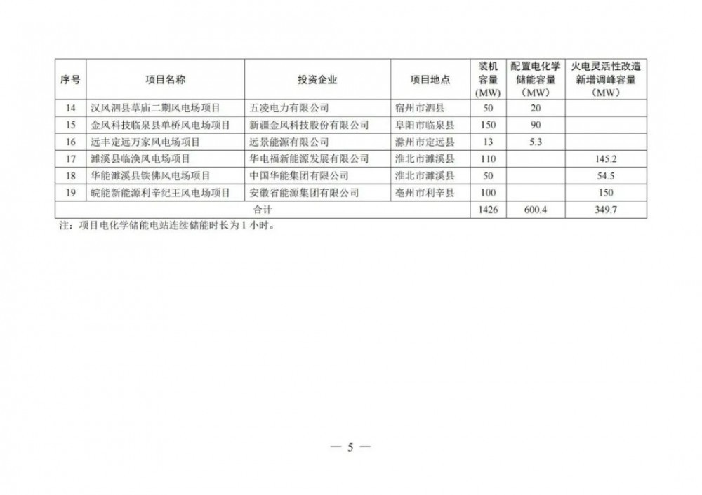 12月6日,安徽省能源局關于印發(fā)2021年風電、光伏發(fā)電開發(fā)建設方案的通知。其中,光伏并網(wǎng)容量4574MW,要求配置電化學儲能容量961.5 MW,火電靈活性改造新增調(diào)峰容量619.6MW。風電裝機容量1426MW,要求配置電化學儲能容量600.4 MW,火電靈活性改造新增調(diào)峰容量349.7MW。且規(guī)定電化學儲能電站連續(xù)儲能時長為1小時。