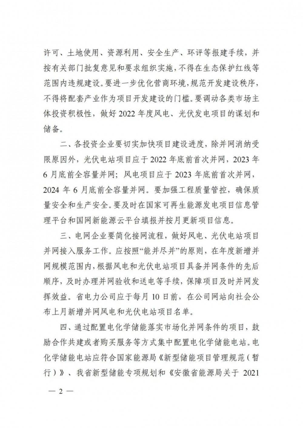 此外,安徽省要求各投資企業(yè)要切實加快項目建設進度,除并網(wǎng)消納受限原因外,光伏電站項目應于2022年底前首次并網(wǎng),2023年6月底前全容量并網(wǎng);風電項目應于2023年底前首次并網(wǎng),2024年6月底前全容量并網(wǎng)。