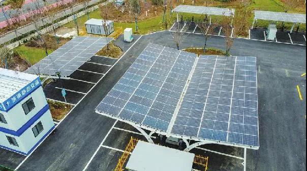 濟(jì)南小清河北路一處停車場,遮陽棚頂部安裝了光伏發(fā)電組件。王鋒 攝