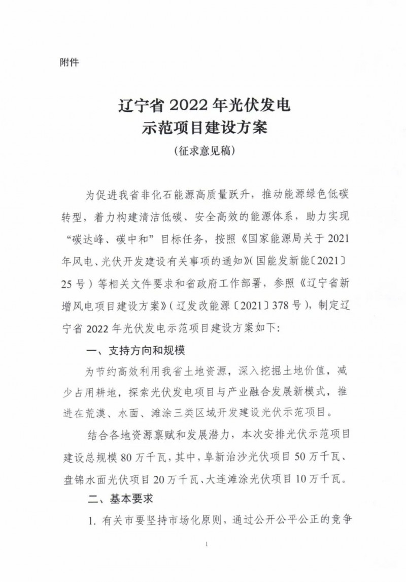 結(jié)合各地資源稟賦和發(fā)展?jié)摿?,本次安排光伏示范?xiàng)目建設(shè)總規(guī)模80萬(wàn)千瓦,其中,阜新治沙光伏項(xiàng)目50萬(wàn)千瓦、盤(pán)錦水面光伏項(xiàng)目20萬(wàn)千瓦、大連灘涂光伏項(xiàng)目10萬(wàn)千瓦。