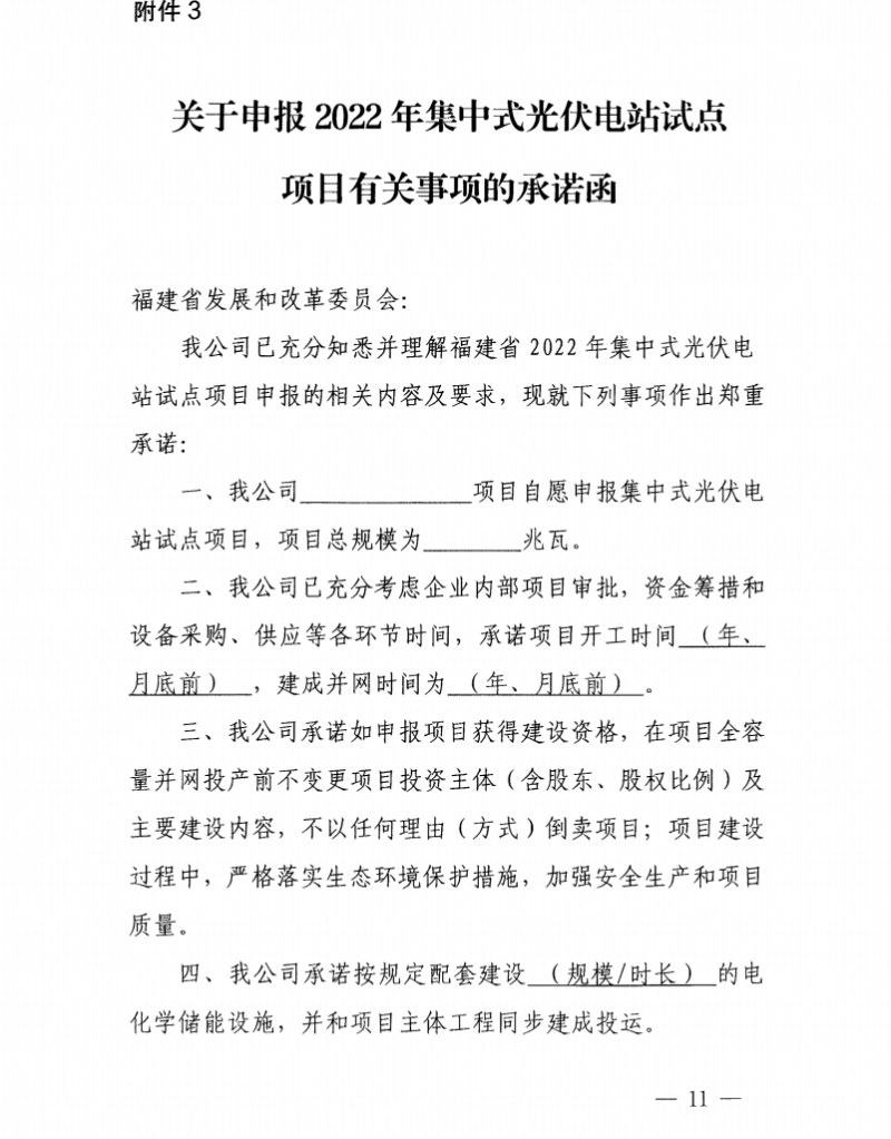 原標(biāo)題:福建省發(fā)展和改革委員會(huì)關(guān)于組織開展2022年集中式光伏電站試點(diǎn)申報(bào)工作的通知