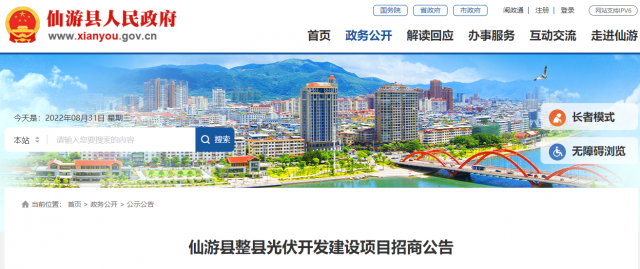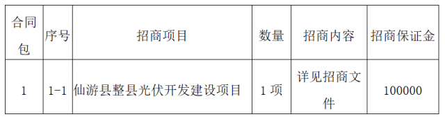 莆田市信成造價咨詢有限公司受仙游縣開放招商領導小組辦公室委托,對仙游縣整縣光伏開發(fā)建設項目進行招商活動,歡迎合格的投資人前來參加。