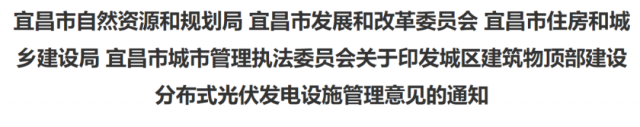 四、有關(guān)審批及備案流程為貫徹《國(guó)務(wù)院辦公廳關(guān)于開展工程建設(shè)項(xiàng)目審批制度改革試點(diǎn)的通知》(國(guó)辦發(fā)〔2018〕33號(hào)),依照《宜昌市工程建設(shè)項(xiàng)目審批制度改革實(shí)施方案》(宜府發(fā)〔2019〕7號(hào))關(guān)于精減審批事項(xiàng)的要求,在限建區(qū)域外且滿足要求安裝屋頂分布式光伏發(fā)電設(shè)施的,先由區(qū)發(fā)改部門辦理項(xiàng)目備案證,再到區(qū)綜合行政執(zhí)法部門備案后實(shí)施,無需辦理規(guī)劃許可。