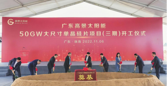 11月6日,廣東高景太陽(yáng)能50GW大尺寸單晶硅片項(xiàng)目(三期)開(kāi)工儀式在珠海市金灣區(qū)舉行。該工程的動(dòng)工,較原計(jì)劃提前了半年,延續(xù)了整個(gè)項(xiàng)目高速度成長(zhǎng)的發(fā)展趨勢(shì)。過(guò)去的22個(gè)月,落地珠海金灣的高景太陽(yáng)能不斷刷新行業(yè)記錄:項(xiàng)目簽約后39天即一期開(kāi)工奠基,140天生產(chǎn)出第一張大尺寸硅片,540天達(dá)成二期30GW滿(mǎn)產(chǎn),比原計(jì)劃提前了半年,600天產(chǎn)值突破百億……據(jù)悉,此次啟動(dòng)的珠?;厝?20GW)項(xiàng)目建設(shè)滿(mǎn)產(chǎn)后可增加年產(chǎn)值約140億元。