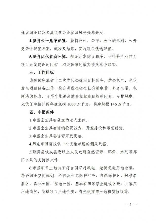 《通知》要求,各市能源局要嚴(yán)格按照《2022年風(fēng)電、光伏發(fā)電開(kāi)發(fā)建設(shè)競(jìng)爭(zhēng)性配置工作方案》,認(rèn)真落實(shí)本區(qū)域項(xiàng)目申報(bào)規(guī)模和土地保障,按照單體項(xiàng)目不低于10萬(wàn)千瓦實(shí)施基地化規(guī)?;l(fā)展,利用已投產(chǎn)新能源項(xiàng)目升壓站及送出線(xiàn)路擴(kuò)建項(xiàng)目不受規(guī)模限制。同時(shí),規(guī)范項(xiàng)目開(kāi)發(fā)秩序,落實(shí)國(guó)家相關(guān)政策要求,不得將配套產(chǎn)業(yè)等作為本次項(xiàng)目開(kāi)發(fā)建設(shè)的門(mén)檻。此外,鼓勵(lì)具備條件的項(xiàng)目實(shí)施聯(lián)合送出,按照工程實(shí)際造價(jià)合理分?jǐn)傎M(fèi)用,節(jié)約土地廊道資源,提升電網(wǎng)資源利用率。