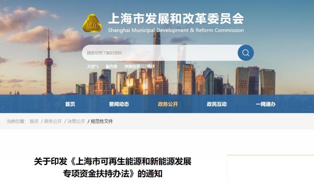 上海市可再生能源和新能源發(fā)展專(zhuān)項(xiàng)資金扶持辦法
