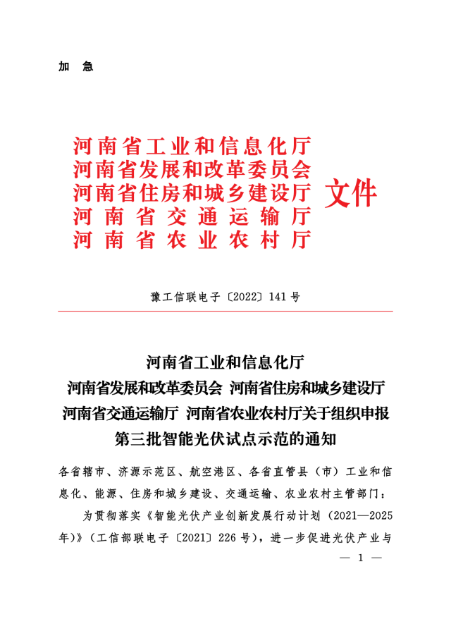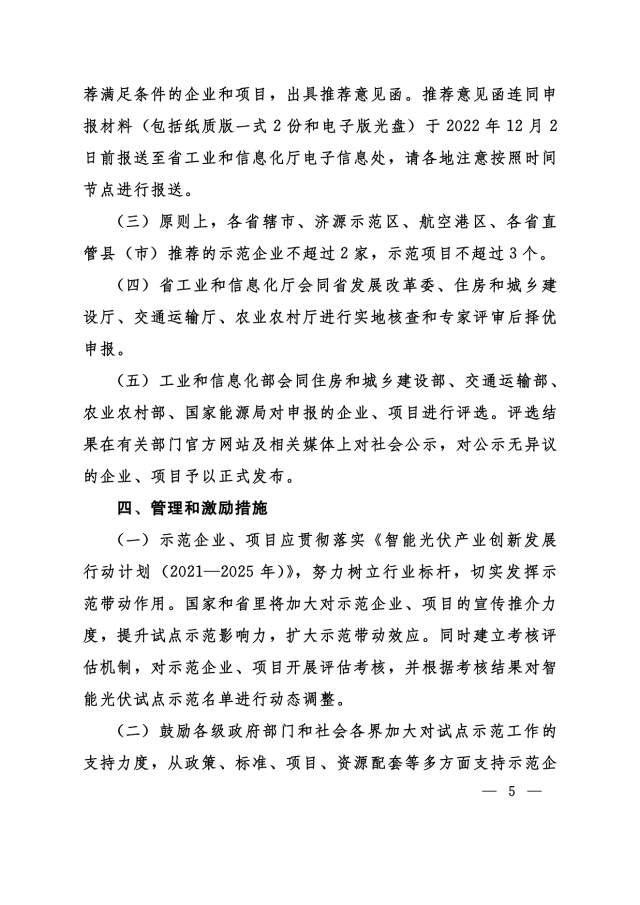 11月24日,河南省工信廳、發(fā)改委、住建廳、交通廳、農(nóng)業(yè)廳等聯(lián)合下發(fā)《關(guān)于組織申報(bào)第三批智能光伏試點(diǎn)示范的通知》,對(duì)示范企業(yè)、示范項(xiàng)目予以支持,包括: