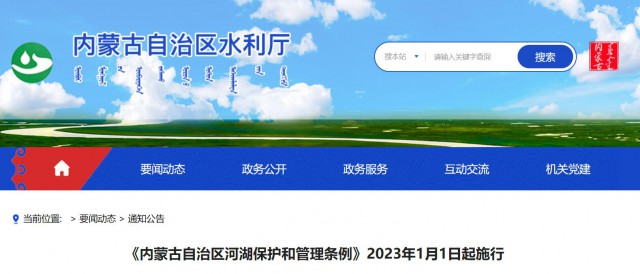 2022年11月23日,內(nèi)蒙古自治區(qū)第十三屆人民代表大會(huì)常務(wù)委員會(huì)第三十八次會(huì)議通過(guò)《內(nèi)蒙古自治區(qū)河湖保護(hù)和管理?xiàng)l例》,現(xiàn)予公布,自2023年1月1日起施行。