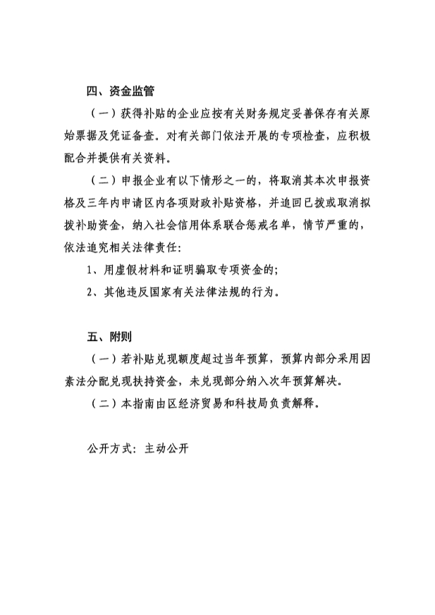 為進一步加強項目管理,提高補貼資金使用效率,區(qū)發(fā)展規(guī)劃和國土資源局將對獲得補貼的項目進行績效評價。若發(fā)現(xiàn)騙取專項資金或其他違法違規(guī)行為,按《指南》相關規(guī)定處理。