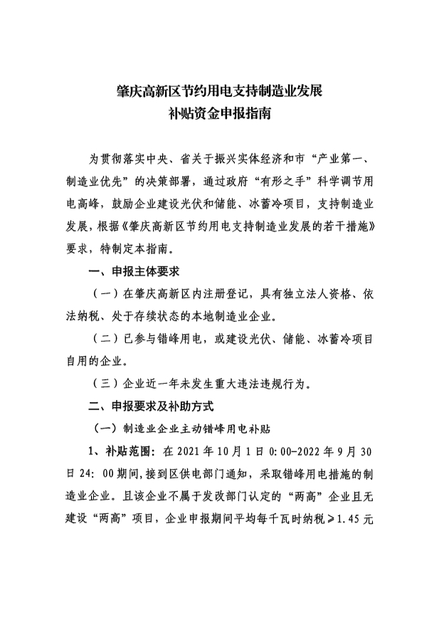 附件:關于印發(fā)《肇慶高新區(qū)節(jié)約用電支持制造業(yè)發(fā)展補貼資金申報指南》的通知