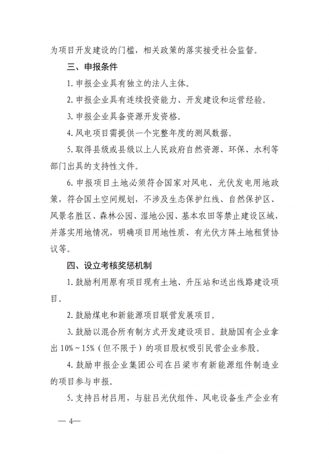 鼓勵申報企業(yè)集團(tuán)公司在呂梁市有新能源組件制造業(yè)的項(xiàng)目參與申報支持呂材呂用,與駐呂光伏組件、風(fēng)電設(shè)備生產(chǎn)企業(yè)有合作的項(xiàng)目。