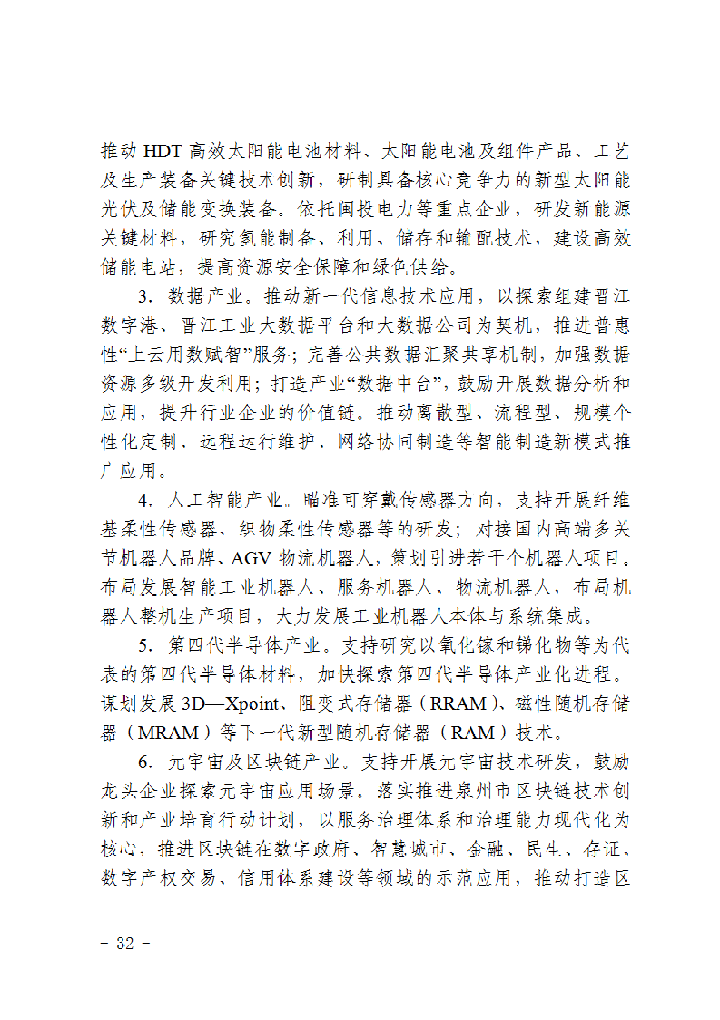 通知提到,在新能源與儲(chǔ)能產(chǎn)業(yè),加大高性能靶材、N型硅片等先進(jìn)光伏材料和氫燃料電池材料、特種功能氟碳材料、高能量電池用銅箔、高效太陽光譜選擇吸收?qǐng)D層等材料的研發(fā);開發(fā)功率型和容量型新能源關(guān)鍵產(chǎn)品,推進(jìn)高能效、低成本光伏材料產(chǎn)業(yè)化。依托晉江光電信息產(chǎn)業(yè)園,推動(dòng)HDT高效太陽能電池材料、太陽能電池及組件產(chǎn)品、工藝及生產(chǎn)裝備關(guān)鍵技術(shù)創(chuàng)新,研制具備核心競(jìng)爭(zhēng)力的新型太陽能光伏及儲(chǔ)能變換裝備。依托閩投電力等重點(diǎn)企業(yè),研發(fā)新能源關(guān)鍵材料,研究氫能制備、利用、儲(chǔ)存和儲(chǔ)配技術(shù),建設(shè)高效儲(chǔ)能電站,提高資源安全保障和綠色供給。