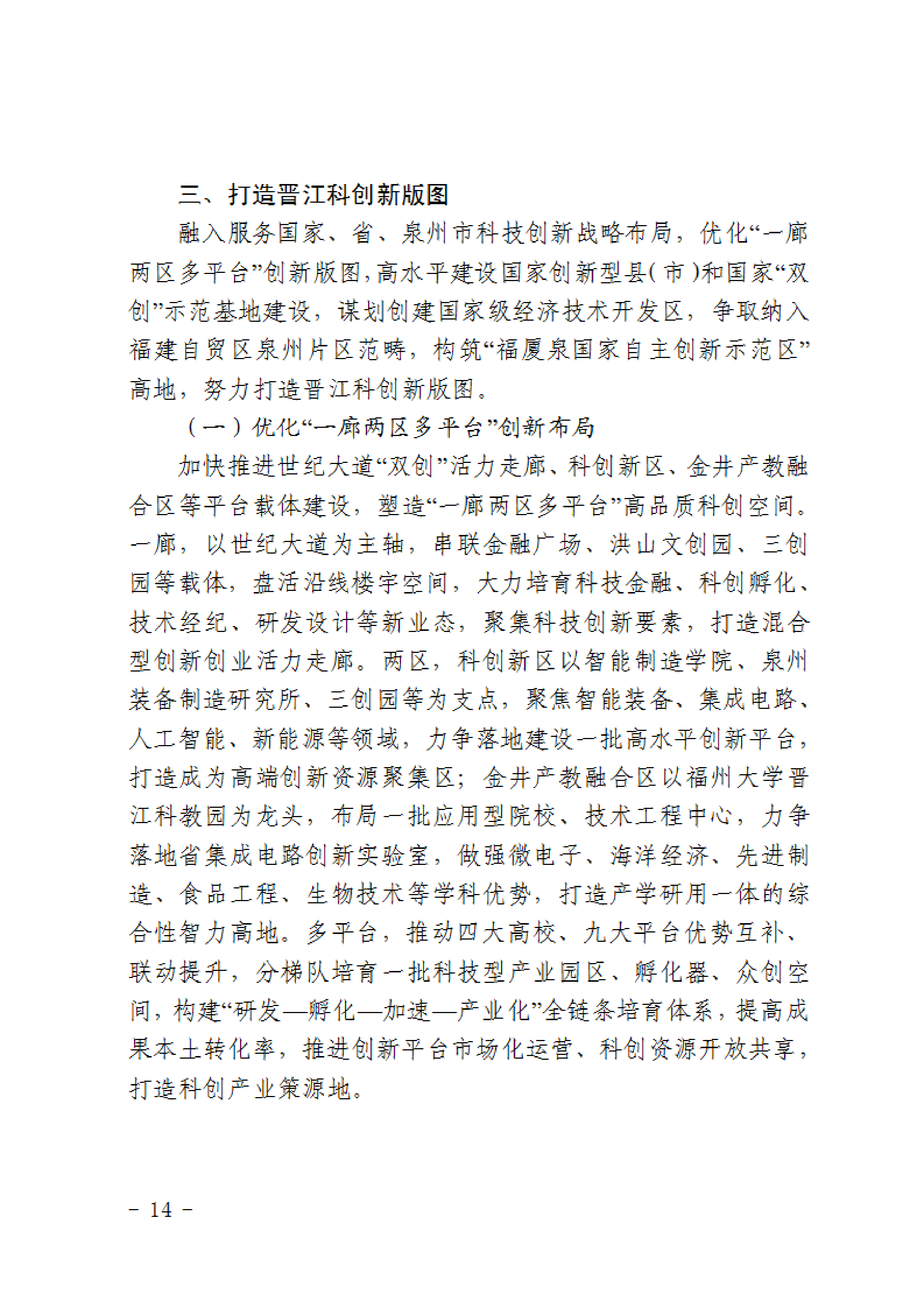 關(guān)于印發(fā)晉江市“十四五”科技創(chuàng)新發(fā)展專項(xiàng)規(guī)劃的通知