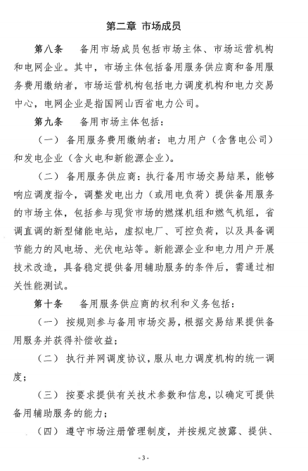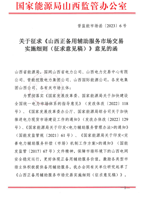 1月13日,山西能源監(jiān)管辦發(fā)布關于征求《山西正備用輔助服務市場交易實施細則(征求意見稿)》意見的函,文件指出,備用服務供應商:執(zhí)行備用市場交易結果,能夠響應調度指令,調整發(fā)電出力(或用電負荷)提供備用服務的市場主體,包括參與現(xiàn)貨市場的燃煤機組和燃氣機組,省調直調的新型儲能電站,虛擬電廠、可控負荷,以及具備調節(jié)能力的風電場、光伏電站等。新能源企業(yè)和電力用戶開展技術改造,具備穩(wěn)定提供備用輔助服務的條件后,需通過相關性能測試。
