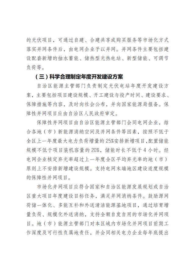 積極參與全國統(tǒng)一電力市場建設(shè),穩(wěn)妥推進光伏等新能源參與電力市場交易,適應(yīng)新型電力系統(tǒng)發(fā)展要求。能源監(jiān)管機構(gòu)核定全區(qū)光伏發(fā)電項目年度保障收購小時數(shù),保障收購小時數(shù)以內(nèi)的電量由電網(wǎng)企業(yè)通過購售電合同結(jié)算,對增配儲能的項目適當予以傾斜,鼓勵保障收購小時數(shù)以外的電量通過市場交易消納。