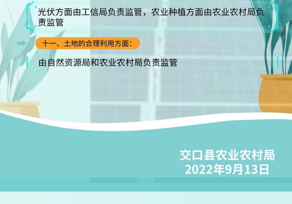 9、強(qiáng)化保護(hù)責(zé)任。強(qiáng)化土地使用權(quán)人(光伏企業(yè))第一保護(hù)人責(zé)任,堅(jiān)持誰(shuí)開(kāi)發(fā)誰(shuí)保護(hù)、誰(shuí)影響誰(shuí)恢復(fù),嚴(yán)防耕地“非農(nóng)化”“非糧化”,保持區(qū)域生態(tài)平衡。